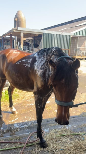 Onze 4 jarige ruin te koop omdat hij te klein is voor ons. Op dit moment is hij rond de 150 en ik 1,83 Afgelopen half jaar hebben we hem zadelmak gemaakt. Hij is op stal sociaal naar mens en paard. Als hij iets nieuws ziet is hij juist nieuwschierig en gaat hij er naar toe. Buiten rijden vind hij erg leuk en fietsen aan de hand ook. Arabisch stamboek, vader van is G. Basgier. MOET SNEL WEG