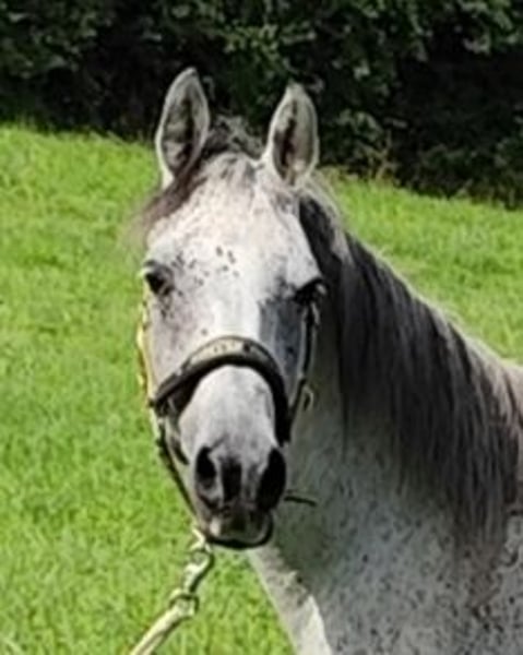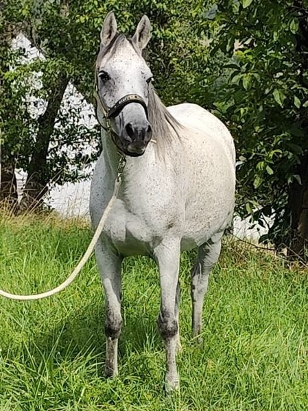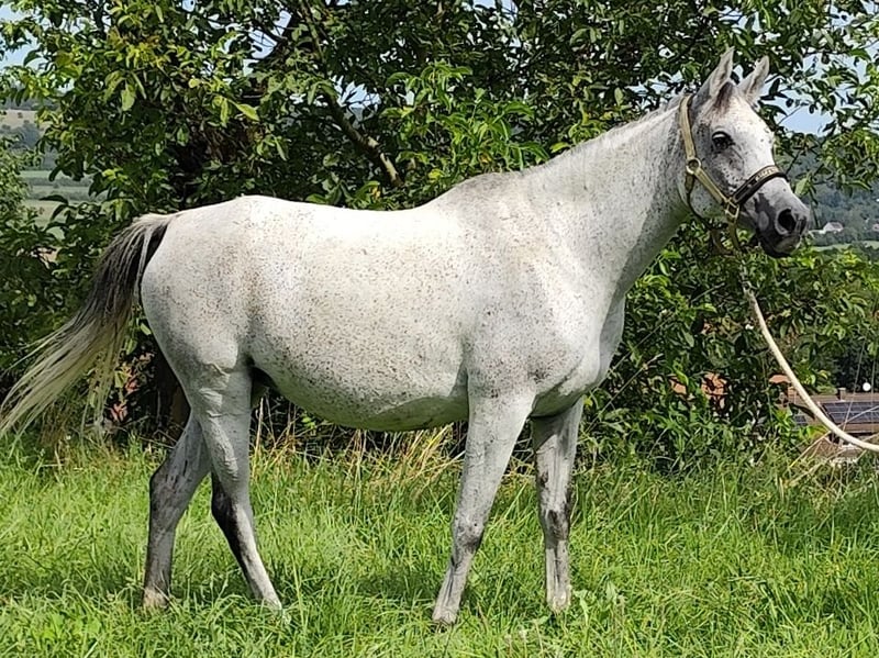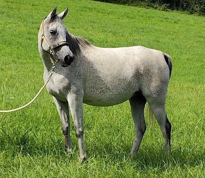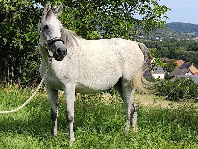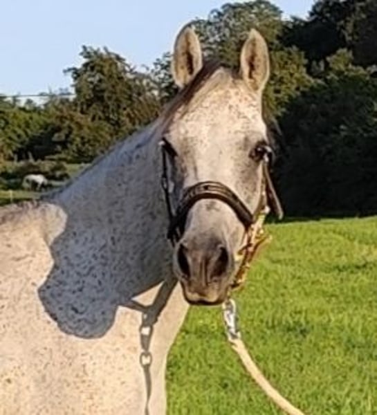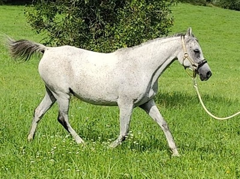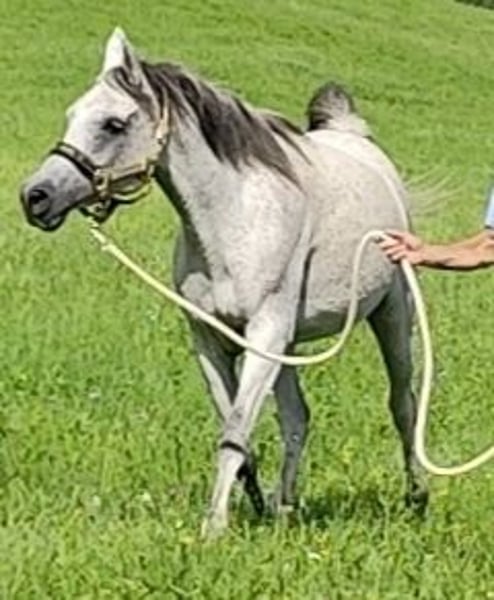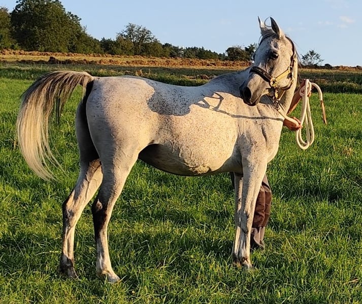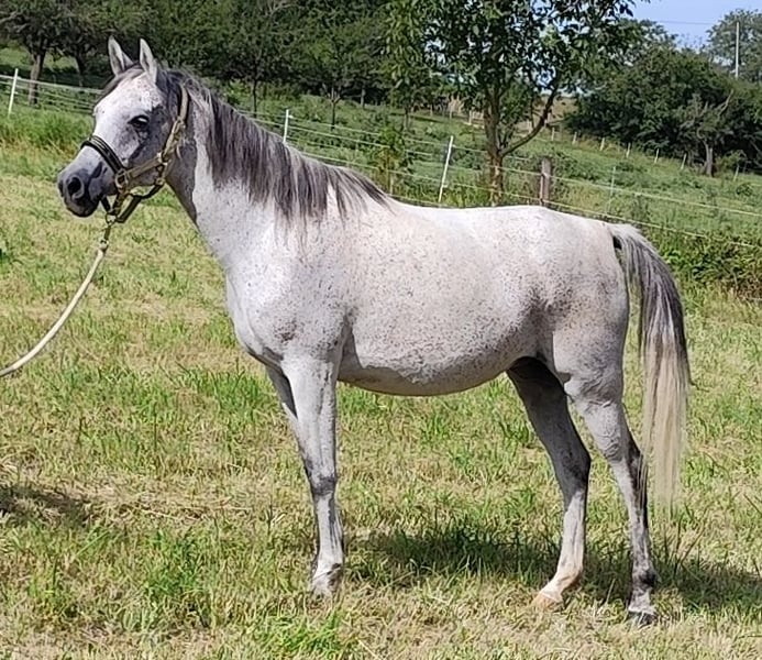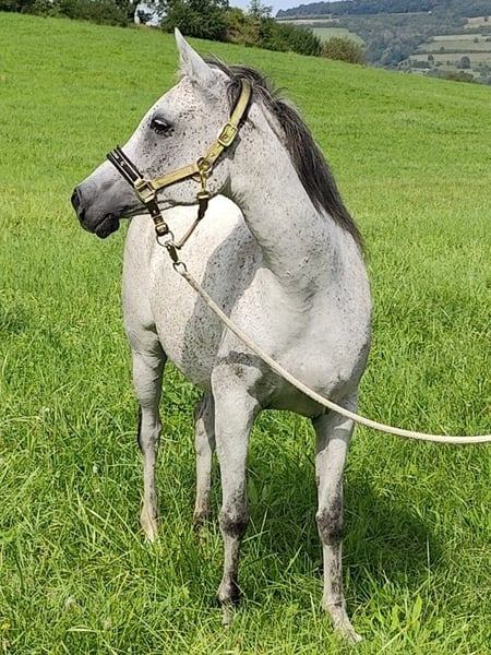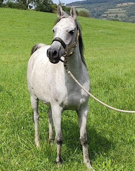Highly noble Asil Arabian mare for breeding, sport and leisure Gray, born 08.06.2016 Outstanding pedigree M-line: SG (Saklawi Gidrani) Large and calm eyes Solid and correct foundation Strong joints and good hooves Long shoulders with a curved neck Very good walk and trot action Very people-oriented and sociable Good for farrier and loader SCID and CA free Selling price: VHB .9.200,-