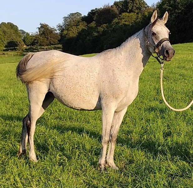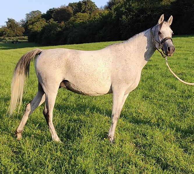 Jument arabe Asil de haute noblesse pour loisirs et élevage Grise, née le 08/06/2016 Excellente lignée Ligne M : SG (Saklawi Gidrani) Grands yeux calmes Fondation solide et correcte Articulations robustes et bons sabots Longue épaule avec encolure arquée Très bonnes actions au pas et au trot Très proche de l'homme et sociable Docile pour le maréchal-ferrant et le transport Exempte de SCID et CA Prix de vente : Négociable 8.500,-