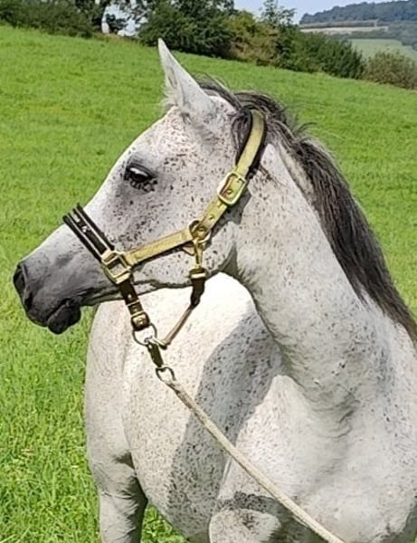 Hochedle Asil Araberstute für Freizeit und Zucht Schimmel, geb. 08.06.2016 Hervorragende Abstammung M- Linie: SG (Saklawi Gidrani) Große und ruhige Augen Solides und korrektes Fundament Kräftige Gelenke und guten Hufen Lange Schulterpartie mit geschwungener Halsung Sehr gute Schritt- und Trabaktionen Sehr menschenbezogen und umgänglich Schmiede- und verladefromm SCID-und CA- frei Verkaufspreis: VHB 7900,-