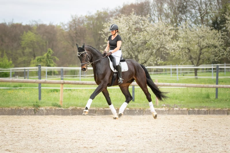 Beautiful tall dark brown gelding by For Romance out of a Riccione-Rubinstein mother. Born 2018 Height 1.79 m Completed L-level dressage Safe in cross-country, He also enjoys jumping and can be further developed.