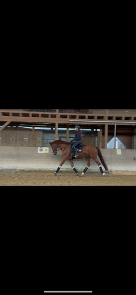 Solo en las mejores manos. Zazu es un caballo castrado de 2017, de pelaje alazán, que posee tanto un corazón de león como de ratón. Zazu es un caballo para jinetes ambiciosos, que cabalga con seguridad y confianza. En la pista aún puede lograr mucho y ya muestra indicios de su buena herencia. Además, disfruta mucho de los pequeños saltos, aunque aún no ha sido entrenado específicamente en ello. Su pata trasera derecha presenta una ligera imperfección estética (sobrehombro), que no causa problemas. → ¡Cualquier información adicional con gusto en contacto privado! ¡Solo entregamos a jinetes responsables y experimentados!