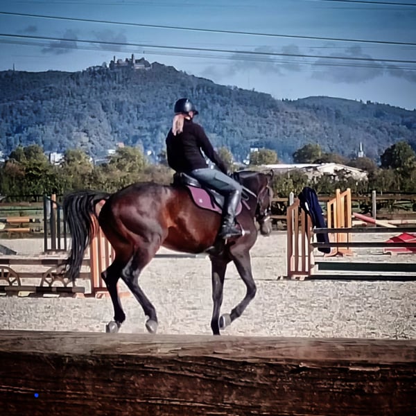 13-jährige Springstute (167 cm) – Herzenspferd mit großem Potenzial sucht besonderen Menschen Schweren Herzens steht meine liebe und erfahrene 13-jährige Springstute (Stockmaß ca. 167 cm) zum Verkauf. Sie konnte bereits bis Klasse L Siege sammeln und wurde auch erfolgreich in M-Prüfungen vorgestellt. Doch nicht nur sportlich ist sie etwas Besonderes – sie ist im täglichen Umgang einfach ein Schatz. Absolut brav, gelassen und unkompliziert, kennt sie Kinder, Hunde und den ganzen Stallalltag und bleibt dabei immer ruhig und ausgeglichen. Verladen ist völlig problemlos möglich und auch beim Hufschmied zeigt sie sich stets vorbildlich und brav. Ein vorhandener Röntgenbefund im Rücken (Kissing Spines) hat sie bislang nie eingeschränkt, da sie stets gut bemuskelt war und damit problemlos gearbeitet werden konnte. Aktuell befindet sie sich in der Reha, da sie einen Sehnenschaden hat und ist daher derzeit nur im Schritt reitbar. Eine vorherige Chip-OP ist sehr gut verlaufen. Nun braucht sie einfach Zeit, um vollständig zu genesen. Ich wünsche mir für sie ein liebevolles Zuhause bei einem Menschen, der ihr die nötige Zeit gibt und ihr Potenzial erkennt. Sie hat so viel zu geben und wird mit Sicherheit wieder Freude machen. Nur in allerbeste Hände abzugeben. Bei ernsthaftem Interesse freue ich mich über eine Nachricht. Videos können gerne per WhatsApp verschickt werden.
