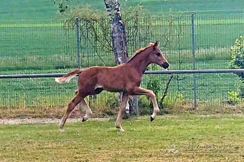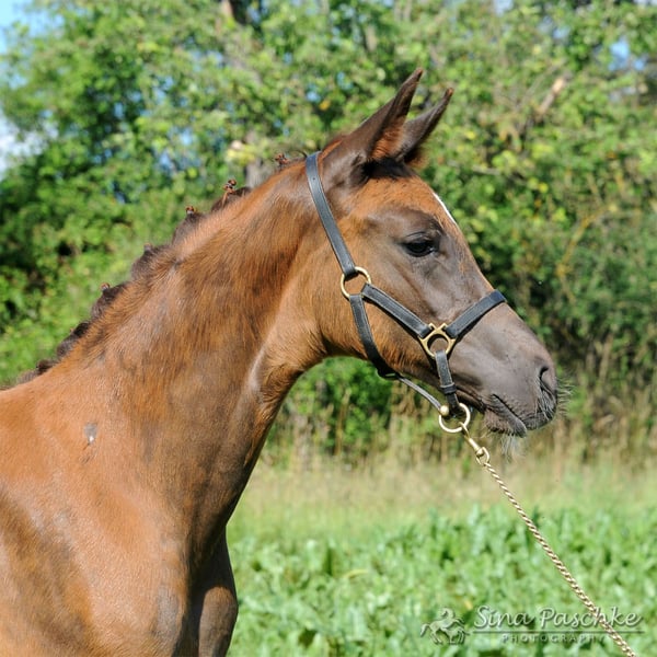 Qualifiziert für das Deutsche Fohlenchampionat in Lienen mit Traumnoten von durchschn. über 9 und mit 0,016 Punkten zum Zweitplatzierten. *Dunkelfuchs *WFFS frei durch die Eltern https://youtu.be/4xOPYyg27h8 Bildschönes, bewegungsstarkes Dunkelfuchs-Stutfohlen von ESCAMILLO aus der Maléa vom Tannenberg v. Bohemian OLD. Sie bezaubert uns jeden Tag durch ihre Ausstrahlung und Bewegungskraft. Sie hat einen hervorragendem Körperbau, ist korrekt und mit einem super Charakter ausgestattet. Mutter Maléa ist als Staatsprämienanwärterin ausgezeichnet und war 2023 Endringstute auf der Landesstutenschau. Großmutter, Staatsprämienstute Musica d'amour, war zweite Reservesiegerin der Leistungsprüfung mit 8,09 und Dressurpferde A siegreich, sowie Dressurpferde L hochplatziert. Vater Escamillo beeindruckt sowohl im Viereck als auch in seiner Vererbungsleistung. Er war Silber oder Bronze Medalliensieger bei der WM der jungen Dressurpferde und Finalist des Nürnberger Burgpokals. Aktuell ist er seriensiegreich in Inter II und auf dem besten Weg zu den ganz großen Championaten. Er hat bereits mehr als 40 gekörte Söhne und seine Nachkommen sind zahlreich im Sport erfolgreich. Das Stutfohlen stammt aus einem der besten Stutenstämme des Brandenburgischen Haupt- und Landgestüt Neustadt (Dosse). Die Urgroßmutter Moulin Rouge v. Quaterback stammt aus der Gestütszucht und hat einen gekörten Vollbruder. Der Stamm zeichnet sich durch eine hohe Veranlagungsvielseitigkeit aus - Sowohl in der Dressur als auch im Springen und Fahren gibt es zahlreiche, in der schweren Klasse erfolgreichen Sportpferde. Kontakt: Sina Paschke +491714885381 Standort bei Stuttgart (BW, Deutschland) ✨✨️ *Dunkelfuchs *WFFS frei durch die Eltern Bildschönes, bewegungsstarkes Dunkelfuchs-Stutfohlen von ESCAMILLO aus der Maléa vom Tannenberg v. Bohemian OLD. Sie bezaubert uns jeden Tag durch ihre Ausstrahlung und Bewegungskraft. Sie hat einen hervorragendem Körperbau, ist korrekt und mit einem super Charakter ausgestattet. Mutter Maléa ist als Staatsprämienanwärterin ausgezeichnet und war 2023 Endringstute auf der Landesstutenschau. Großmutter, Staatsprämienstute Musica d'amour, war zweite Reservesiegerin der Leistungsprüfung mit 8,09 und Dressurpferde A siegreich, sowie Dressurpferde L hochplatziert. Vater Escamillo beeindruckt sowohl im Viereck als auch in seiner Vererbungsleistung. Er war Silber oder Bronze Medalliensieger bei der WM der jungen Dressurpferde und Finalist des Nürnberger Burgpokals. Aktuell ist er seriensiegreich in Inter II und auf dem besten Weg zu den ganz großen Championaten. Er hat bereits mehr als 40 gekörte Söhne und seine Nachkommen sind zahlreich im Sport erfolgreich. Das Stutfohlen stammt aus einem der besten Stutenstämme des Brandenburgischen Haupt- und Landgestüt Neustadt (Dosse). Die Urgroßmutter Moulin Rouge v. Quaterback stammt aus der Gestütszucht und hat einen gekörten Vollbruder. Der Stamm zeichnet sich durch eine hohe Veranlagungsvielseitigkeit aus - Sowohl in der Dressur als auch im Springen und Fahren gibt es zahlreiche, in der schweren Klasse erfolgreichen Sportpferde. Kontakt: Sina Paschke +491714885381 Standort bei Stuttgart (BW, Deutschland)