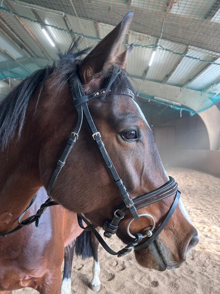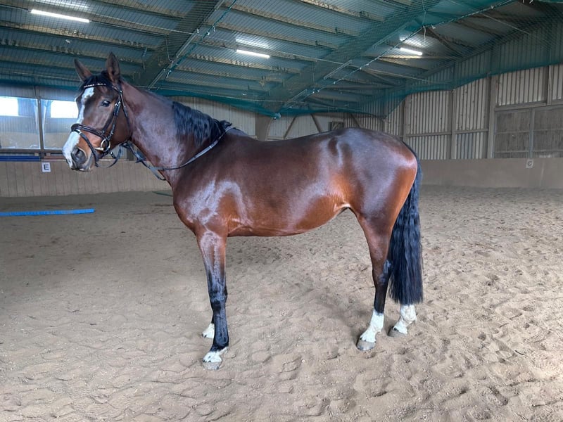5-year-old mare with potential for show jumping For sale is a talented 5-year-old mare. She has not yet been extensively trained in show jumping but demonstrates a very nice, careful jump and possesses all the qualities desired for further development. The mare enjoys her work immensely, especially jumping. She is always motivated and rides very pleasantly under saddle, with a soft and consistent connection. She also enjoys hacking out or going for walks. She is being sold with a heavy heart, as her owner is moving abroad and unfortunately cannot take her along. Therefore, we are seeking a suitable, nurturing home where she can continue her training and be appreciated. If genuinely interested, we look forward to receiving your message.
