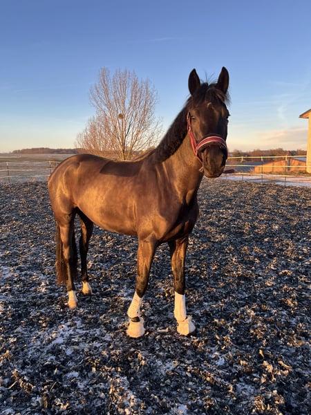 Aufgrund altersbedingter Einstellung der Zucht geben wir unsere letzte Stute ab. Esdoulina wurde die letzten Jahre geritten und auch auf Turnier vorgestellt, jedoch sehen wir ihre Zukunft eher in der Zucht. Sie ist im Umgang ein braves Pferd mit viel Ausdruck, jedoch unter dem Sattel nicht für Amateure geeignet.