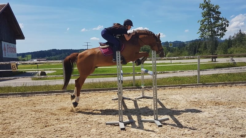 Sunny ist ein hübscher, aufgeweckter Wallach, der Dressurtechnisch auf L/M Niveau (Traversalen, Galopp-Seitengänge funktionieren gut, leichte Pirouettenansätze sind zu erkennen) und im Springen bis L ausgebildet ist. Er arbeitet gern und braucht einen einfühlsamen und konsequenten Reiter und Freund, der Lust hat, sich mit ihm zu beschäftigen und Zeit zu investieren. Diese Zeit habe ich momentan leider nicht, da ich mich im Abistress befinde und voraussichtlich danach studieren werde, das heißt ich werde ihm nicht gerecht werden. Mit anderen Pferden ist er äußerst umgänglich und nicht dominant, kann also sowohl mit Stuten, als auch mit Wallachen gemischt auf der Koppel stehen und genießt die sozialen Kontakte. Er wurde immer abwechslungsreich bewegt (Platz, Halle, Gelände). Leider muss er momentan pausieren aufgrund einer Verletzung vor 5 Monaten. Im Moment befindet er sich im Schrittaufbau und geht 1-1,5h pro Tag Schritt und der Tierarzt ist sehr zufrieden mit der Heilung. Während der ganzen Zeit wurde eine gewissenhafte Therapie durchgeführt und bei der letzten Tierarztkontrolle im November war er auch schon komplett lahmfrei. Sunny sollte trotzdem noch einige Zeit nur Schritt gehen und dann kann das Training langsam wieder aufgebaut werden. Er ist natürlich brav beim Hufschmied, Verladen ist auch kein Problem und er war schon oft auf Turnieren oder Lehrgängen unterwegs. Dass Impfungen und Wurmkuren regelmäßig durchgeführt wurden, ist klar. Wichtig: er kann zur Zeit nicht probegeritten werden. Reitvideos sind aber vorhanden und können auf Nachfrage hin angeschaut werden.