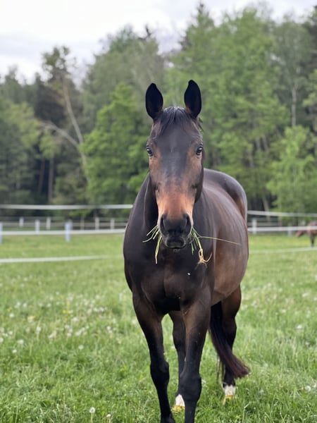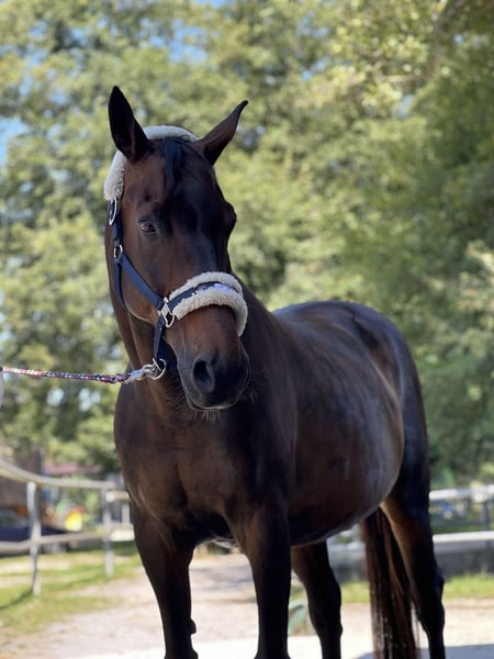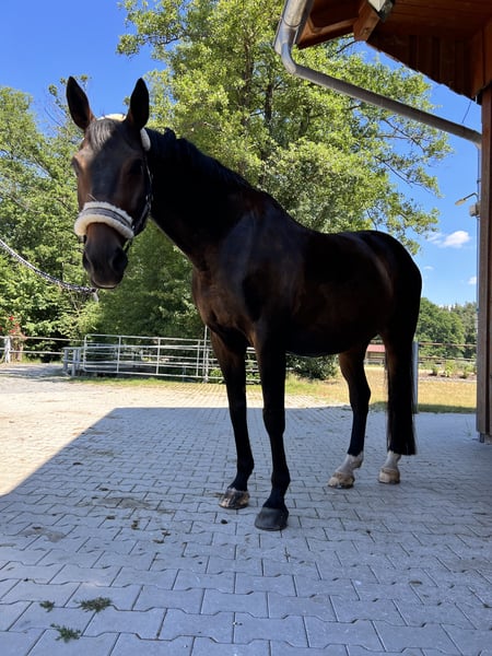 I am looking for a caring home for my gentle, loving senior gelding, RUDI (Red Nose Rudi), where he can be truly himself and receive good care. He is an 18-year-old dark bay Bavarian gelding, very well-behaved, gentle, and human-oriented — a real sweetheart to handle. Unfortunately, he is no longer suitable for riding, likely due to a front-left hoof rotation issue (X-rays can be provided upon request). Despite this, he remains lively, attentive, and affectionate. He enjoys walks, groundwork, grooming, and simply spending time with a person. For someone who appreciates caring companionship and the love of a horse, he is a wonderful partner. He is shod four times a year and behaves well with the farrier and veterinarian. In daily handling, he is uncomplicated, friendly with other horses, and easy to manage — even suitable for children or beginners from the ground. I wish for him a home with companions, plenty of turnout, loving care, and time. He will be placed in good, responsible hands. If you are interested or have questions, I would be happy to hear from you — I am happy to share more about him and his habits.