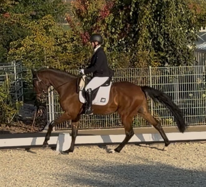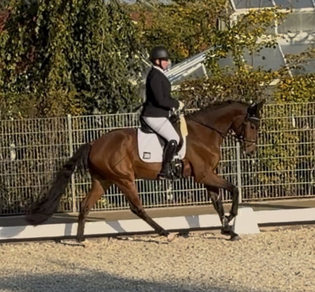 Rossi – 3-jähriger brauner Wallach mit tollem Charakter Alter: 3 Jahre Stockmaß: ca. 1,62 m Farbe: Braun Ausbildungsstand: Erste Reitpferdeprüfungen absolviert Charakter: Brav, nervenstark, unkompliziert Geht alleine und in der Gruppe ins Gelände Sehr angenehm im täglichen Umgang und beim Reiten Beschreibung: Rossi ist ein charmantes junges Pferd mit großem Potenzial. Er zeigt sich im Training sehr brav, motiviert und mit einem schönen Bewegungsablauf. Durch seine Gelassenheit, Nervenstärke und Menschenbezogenheit macht er jeden Tag Freude. Ein ideales Nachwuchspferd für alle, die einen unkompliziertes junges Pfred suchen, der von Beginn an Spaß macht und sich leicht weiter ausbilden lässt. Kontakt: 📞 0151-73049950 📧 c.schmoee77@gmail.com