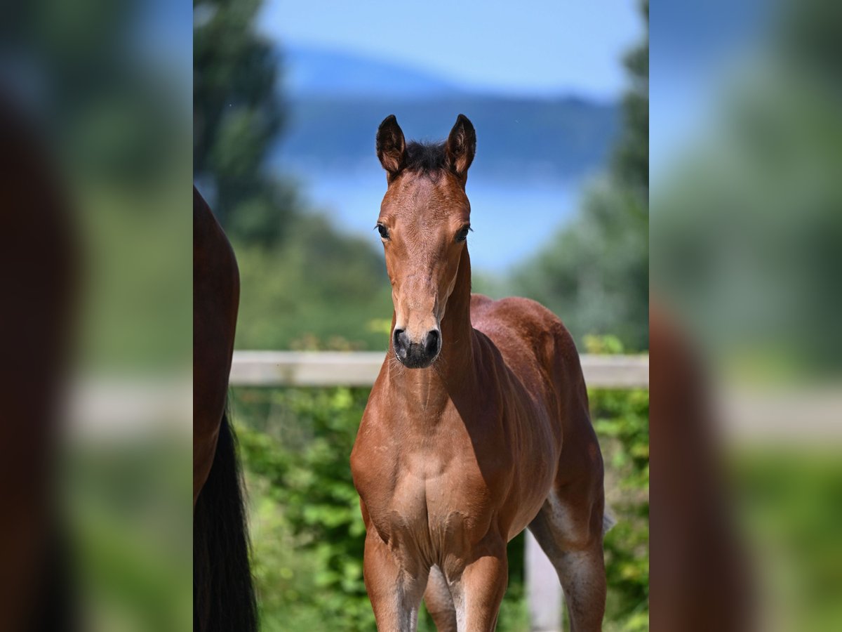 Dorian G is the first foal out of a highly decorated dam. Emilia du Rouet is named after her sire Balou du Rouet and her dam Emilia. The sire is one of the world's best sires in show jumping and eventing, the dam was a state premium mare and southern German vice-champion of six-year-old eventing horses. She qualified for the Bundeschampionat and achieved around 130 placings with an older amateur in show jumping (up to medium**), eventing and dressage (up to elementary class). Emilia du Rouet is very similar to her dam in terms of conformation and interior. She is friendly and uncomplicated to handle, courageous and self-confident, ambitious but always controllable. She passed a good mare performance test and was awarded first prize at the 2023 Bavarian State Mare Show. As she is the only daughter of her dam Emilia, we initially took her into breeding to continue this performance line. She produced a gold-winning colt by Dinken in 2024. At the foal show in Ising, Dorian G received a 9 for all three gaits and a high overall score of 43.5. Dorian G is very handsome, highly elastic and versatile. His character is very much like his dam, he is friendly, people-oriented and courageous. On his first trip to the foal show, he jumped onto the trailer before his mother. From today's perspective, he can undoubtedly be considered a stallion prospect. As we are reducing our breeding program due to his age and his dam is again in foal to Dinken, he is for sale - only to the very best hands.