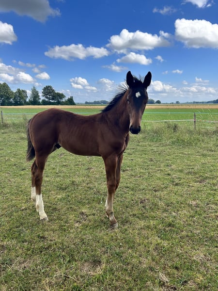 Zweieinhalbjähriger (noch) Hengst zu verkaufen (geboren 1.4.2023) , Mutterstute A Dressur platziert - mit Potenzial für das große Viereck. Valentin wurde als Fohlen prämiert. Er zeigt sich sehr menschenbezogen, sehr lieb im Umgang und wächst aktuell im Herdenverband auf. Hier zeigt er sich ebenfalls sehr unkompliziert. Der aktuelle Aufzuchtplatz kann übernommen werden. Ergebnisse der Fohlenpräsentation siehe Anhang: Typ 8.0 / Fundament 7.5 / Schwung 8.5 / Schritt 8.5 / Gesamt: 41.0 / Prämienfohlen Mehr Infos ausschließlich telefonisch! Schriftliche Nachrichten werden nicht beantwortet. 0176/21305781