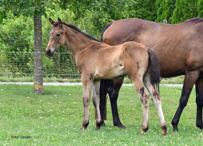**Sales Advertisement: Bavarian Warmblood Colt Foal with Great Potential in Eventing** Exceptional foal in terms of temperament and conformation, raised with love on a breeding farm from a proven dam, whose picture is attached. For sale is a promising Bavarian Warmblood colt foal, born in April 2025. This half-bred colt is well-constructed, with a calm yet alert demeanor. He demonstrates very good movement in all three basic gaits. He is familiar with foal training and is out on pasture 24/7 with a herd of mares and five other foals. When fully grown, he is expected to reach a height of approximately 170 cm. If you are interested, we look forward to your inquiries. You can also visit us at www.wunschfohlen.de. We can be reached via WhatsApp at 0171 7706452.