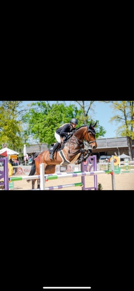 Fairy Tail 5 is a 13-year-old mare, bred in Bavaria. Currently placed with professionals up to 1.30 m, she has already passed her peak in sport – making her ideal for ambitious amateurs or small competitions. She is regularly ridden by a not very strong young rider – thus, she is also perfect for less experienced riders or those transitioning from ponies. In the dressage arena, she is also cooperative, goes nicely on the bit, is familiar with work in the arena, and is well-behaved on trail rides – whether alone or in a group. Character & Handling: ✅ Uncomplicated in daily handling ✅ Occasionally a bit mareish when grooming, but never aggressive ✅ Loadable (knows trailers & trucks) – can travel alone ✅ Shoeing-friendly (currently shod all around) ✅ Regularly dewormed and vaccinated Suitable for: ✅ Show jumpers in small competitions ✅ Returning riders ✅ Juniors/transitioning riders ✅ Dressage & leisure ✅ Amateur competitions ✅ Ideal as a "home horse" that can be enjoyed riding at any time Breed: Warmblood Gender: Mare Year of Birth: 2012 Height: approx. 1.75 m Training Level: Jumping placed up to 1.40 m, dressage secure at A-level Field of Use: Jumping (ideal 95–115 cm), dressage, leisure, trail Trial rides are possible by appointment – we look forward to it!