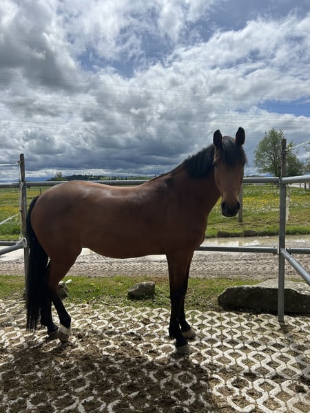 Ich biete meine 16 Jährige, wunderschöne bayerisch gezogene Stute zum Verkauf. Ich suche tolles neues zu Hause /Endplatz mit täglichem Koppelgang+Paddockbox/ Aktivstall(Platz vor Preis)!! Miss ist eine sehr motivierte und arbeitswillige Stute. Dressur Arbeit macht mit ihr viel Spaß, da sie leicht in der Hand ist und sowohl auf Gewicht als auch auf den Schenkel sehr fein reagiert. Auch ohne Sattel ist sie durch ihre bequemen Gangarten toll zu reiten. Spring Talent ist auf jeden Fall vorhanden (früher auch viel Turnier geritten bis M Springen). Altersbedingt möchte ich Sie nicht für Reiter im Turniersport abgeben. (Meine aktuelle Reitbeteiligung hat auf ihr ein paar kleine Reitabzeichen gemacht und ist ein paar kleine Turnierrunden gestartet, das wäre selbstverständlich kein Problem) Kleine Runden im Gelände sind alleine und mit dem richtigen Partner ist auch alles andere möglich. Sie ist immer gut händelbar. Sie kennt auch Wasser , da es in unserem Gelände auch einen kleinen Bach gibt in den man reiten kann. Selbstverständlich kennt sie auch die Arbeit an der Longe. Schreib mir bei Interesse einfach eine pn oder über WhatsApp +4917632589270