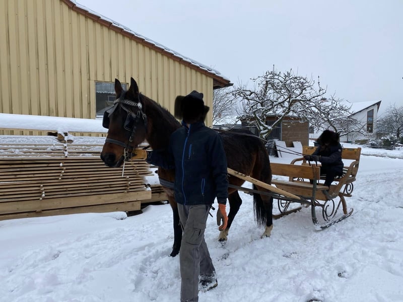 Nach langem Hin und Her und einer schweren Entscheidung möchte ich meine, gerade 19 Jahre alt gewordene, Stute als Freizeitpferd und nur in beste Hände abgeben. Auf dem Platz und auf der Koppel gebisslos geritten. Im Gelände wurde sie mit Gebiss geritten Kann im Gelände alleine und in der Gruppe geritten werden. Braucht im Gelände und im Galopp einen sicheren Reiter. Ist kein Pferd für Anfänger. Koppt beim Satteln etwas! Vom Boden aus gearbeitet sowohl im Horsemanchip als in der Freiarbeit, Zirensik (Lektionen wie Spanischer Gruß, Liegen, Kopf schüttel, Flemmen,...) und die anfänge der Handarbeit (Seitengänge, übertreten an der Hand) Sie einen tollen Charakter und lernt schnell, ist verschmust und arbeitswillig. Braucht eine Person der ihr Grenzen zeigt und Sicherheit gibt. Schmiedefromm und beim Tierarzt lieb. Steht seit 6 Jahren Barhuf, wurde beim Vorbesitzer beschlagen. Steht im Sommer auf der Koppel und im Winter auf dem Paddock. Sie ist herdenverträglich und steht ganzjährig in der Herde im mittleren Rang Aktuell nicht trainiert müsste neu antrainiert werden! Bilder sind schon älter, 2-3 Jahre alt. Aktuelle Bilder können bei Interesse gerne geschickt werden. Nur in erfahrene Hände abzugeben. Bitte nur bei ernstgemeintem Interesse melden! AKU kann gerne gemacht werden. Equipment (Halfter, Führstrick, Trense und Sattel mit Schabracke) kann gerne dazu erworben werden bzw. Ist VB. Für mich gilt Platz vor Preis, da sie sehr zutraulich und mir ans Herz gewachsen ist. Verkaufen tue ich sie, da ich zuwenig Koppeln und Futter besitze. Zucht ist außerdem ausgeschlossen!