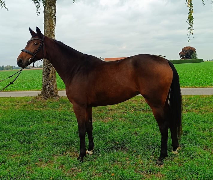 Zum Verkauf steht eine 4-jährige Stute direkt vom Züchter, abstammend von Comme il Faut x Landprinz. Aufgrund von Zeit- und Platzmangel wurde sie erst im Juni angeritten und zeigt sich seitdem als äußerst talentiertes, lernwilliges und motiviertes Pferd. Bereits ihr erster Turnierstart endete mit einem Sieg, was ihre Qualität und ihr Potenzial deutlich unterstreicht. Diese junge Stute überzeugt durch ihre Intelligenz, ihren klaren Kopf und ihre Freude an der Arbeit. Sie ist jeden Tag gut gelaunt, freundlich im Umgang und sehr menschenbezogen. Am Sprung ist sie ein echtes Traumpferd – mit hervorragender Übersicht, viel Übersetzung und dem klaren Willen, immer fehlerfrei zu springen. Ihre behutsame Aufzucht spiegelt sich in ihrem ausgeglichenen Charakter und ihrer Rittigkeit wider. Eine vielversprechende Nachwuchsstute für den Springsport, die mit ihrer Einstellung und ihrem Herz am richtigen Fleck begeistert.