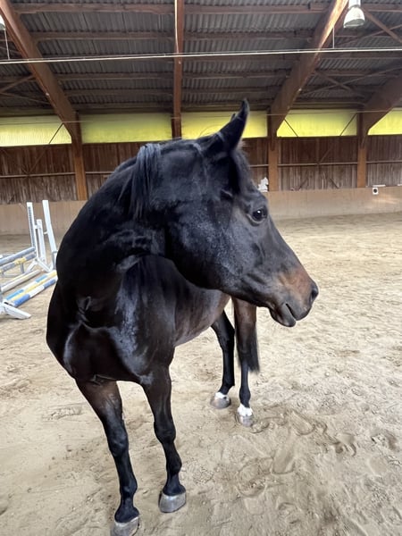 **Verkaufsanzeige: Bayerisches Warmblut Stute** Zum Verkauf steht vom Züchter eine wunderschöne bayerische Warmblut Stute, geboren im Jahr 2020. Sie präsentiert sich in einem eleganten schwarzbraunen Fell und hat ein Stockmaß von zur Zeit ca. 165 cm. Diese talentierte Stute ist besonders für den Dressursport geeignet. Sie zeigt bereits vielversprechende Ansätze in der Ausbildung und hat ein angenehmes, lernwilliges Wesen. Sie ist im Umgang dem Alter entsprechend brav und zuverlässig. Ihre Bewegungen sind geschmeidig und ausdrucksstark, was sie zu einer vielversprechenden Partnerin für ambitionierte Reiter macht. Sie wird momentan gefühlvoll angeritten. Die Stute ist regelmäßig geimpft, entwurmt und besitzt einen aktuellen Pass. Bei Interesse oder weiteren Fragen stehe ich Ihnen gerne zur Verfügung. Besichtigungen sind nach Absprache möglich. Wir freuen uns auf Ihre Nachricht!
