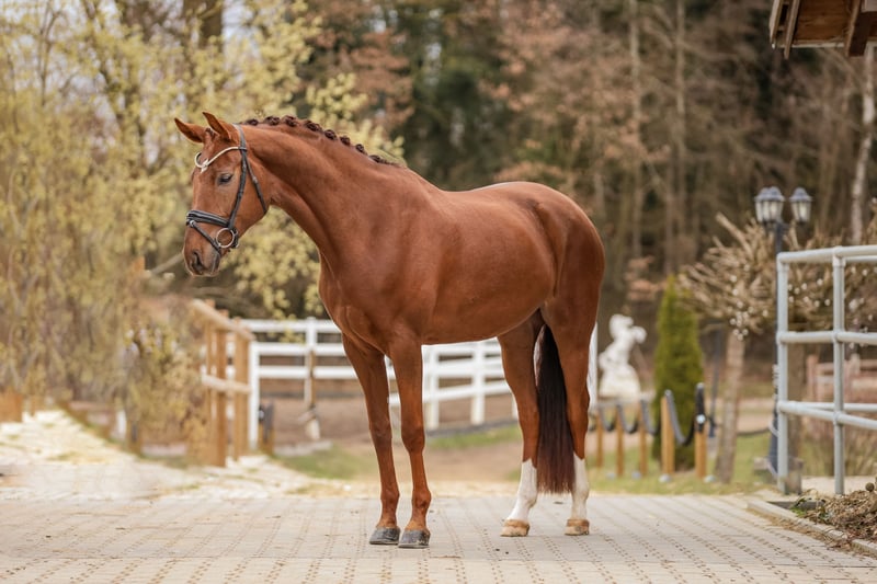 Tiffany ist eine 5-jährige ausdrucksstarke Dressurstute mit sehr guten Grundgangarten und einer Einstellung und Rittigkeit die kaum zu übertreffen sind. Ihre Bewegungsmechanik gepaart mit ihrer absolut lieben und freundlichen Art lässt alle Herzen höher schlagen und machen sie zu einem Nachwuchspferd mit allen Möglichkeiten im großen Viereck zu glänzen. In ihrer Ausbildung ist sie nun Dressurpferde A fertig und der Aussengalopp wurde spielerisch begonnen. Ihre Qualität konnte sie bereits mit einem Sieg mit hohen Noten in einer Reitpferdeprüfung unter Beweis stellen. Sie ist besonders kopfklar und nervenstark für ihr noch junges Alter. Zudem ist Tiffany herdenverträglich, Schmiede- und verladefromm. Ein Dressurpferd für höchste Ansprüche und Ambitionen. Besucht auch unsere Instagram Seite @unicornhorsesofficial Dort findet ihr Alltagseindrücke und weitere Videos von Tiffany. Bei Interesse bitte Kontaktaufnahme über folgende Telefonnummer: +49 176 20174499