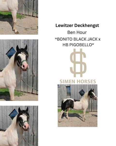 Ben Hour to silny, czarny ogier pinto o wyjątkowym charakterze. Zatwierdzony do księgi ogierów II. Dziedziczy tylko srokatość. Wszyscy jego przodkowie byli w naszym stadzie - zdrowi i z jasną głową. Rasa naturalna. Zarejestrowany w Niemczech. Warunki hodowlane na życzenie!