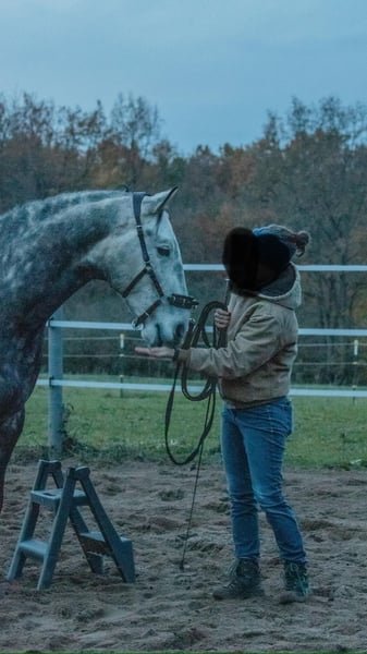 Je mets en vente mon hongre berbère de 7 ans, nommé Raif. C’est un cheval exceptionnellement amical et proche de l’homme, qui charme par sa douceur et sa nature facile au quotidien. Raif est très intelligent, sensible et toujours motivé à travailler avec son cavalier. Ce que Raif connaît déjà : * Promenades – en solo ou en groupe * Travail à pied * Travail à la longe * Travail en liberté * Selle connu * Il apprend actuellement à accepter le poids du cavalier, et il se montre ouvert et détendu à ce sujet. (Il n’a pas encore été monté en raison d’un manque de temps, mais Raif deviendra sûrement un cheval de selle fiable avec une formation appropriée.) Raif vit actuellement en paddock avec un troupeau de hongres. Il souffre d’une allergie au foin, qui peut se manifester par des symptômes de headshaking. Cela se traduit uniquement par une hypersensibilité au niveau de la bouche, ce qui peut causer des difficultés lors de la consommation de foin, surtout du foin sec, dont les tiges irritent sa bouche. Il peut manger sans problème de l’herbe, des granulés, etc. Il n’a pas montré d’autres signes typiques de headshaking. En paddock, lors du travail à la longe, à pied ou en promenade, il ne présente pas de symptômes. Avec du foin humide ou vaporisé, il est totalement sans symptômes et mange normalement. Je suis à votre disposition pour répondre à toutes vos questions en MP. Priorité à l’espace disponible, pas au prix.