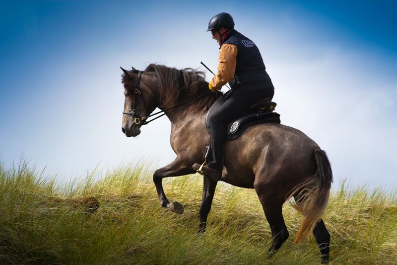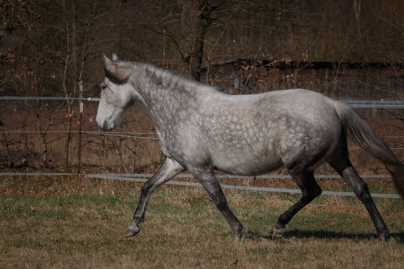 Oreliè lebt seit ihrem 7. Lebensmonat bei uns, wuchs mit engem Familienanschluss auf und ist schonend angeritten und eingefahren. Sie ist dem Menschen sehr zugetan, nervenstark, verlässlich und liebevoll. Sie ist bereits am Strand galoppiert und hat ausgiebig das Gelände erkundet. Hier ist sie die Seele der Herde. Dank ihrer Größe deckt sie gut ab, der Reiter auf den Photo ist 185 cm groß. Oreliè ist eingetragen in das VFZB e.V. Stutbuch I Prämienklasse II und durfte in den letzten Jahren zwei qualitätvolle Fohlen aufziehen. Oreliè trägt ein Farbgen. Oreliè stammt ab von dem beeindruckenden Rapphengst Yusafir und der Udama du pre fleuri. Sie ist für die Zucht sehr interessant!