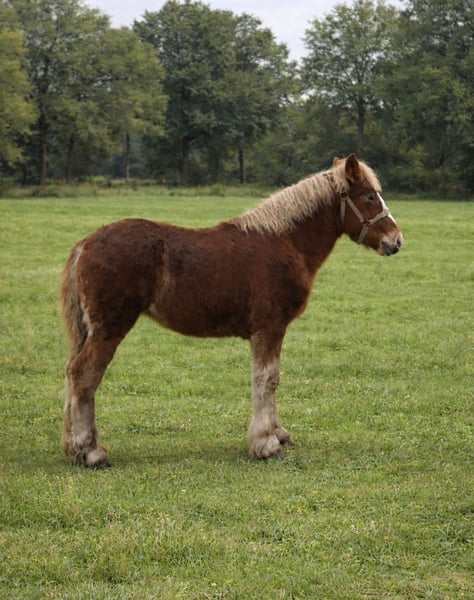 Zu verkaufen: Stutfohlen Boulonnais x Belgisches Kaltblut (Kreuzung) Geboren am 1. August 2025 Fuchsfarben Für weitere Informationen rufen Sie bitte an. 06 13359085