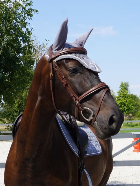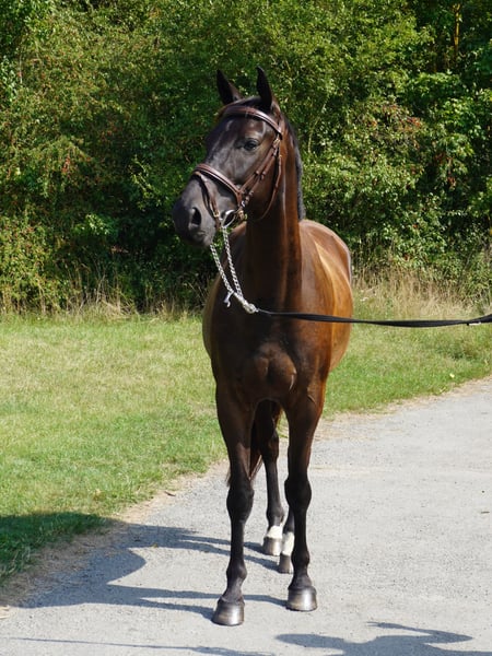5-year-old all-round partner from our own breeding From our own breeding, we offer a promising, attractive, and charming 5-year-old young horse. He was gently backed at the age of 4. Currently, he is being trained in various disciplines including dressage, jumping, and cross-country, and he enjoys and confidently masters the first jumps. He impresses with three clear, good basic gaits and always shows joy in his work. In handling, he is sweet, cuddly, and has a strong trust in humans. Of course, he is well-behaved for the farrier and loading. An ideal all-rounder for riders who are looking for a young horse that has been trained with patience and care – and is now ready to achieve great things together with his person.