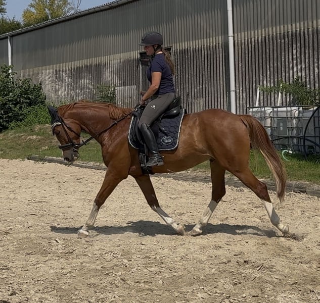 Zum Verkauf steht ein 1,66 m großer Brandenburger Wallach, geboren Juli 2020, der mit seinem verschmusten Wesen, Übersicht und Arbeitsfreude überzeugt. Er kennt die tägliche Dressurarbeit auf Reitpferdeniveau, springt sicher und mit viel Übersicht und zeigt sich sowohl beim Freispringen bis 1,30 m als auch bei Geländesprüngen sehr souverän und unkompliziert. Im Gelände ist er eine echte Lebensversicherung. Fremde Plätze kennt er bereits, Turniere wurden aus Zeitmangel bisher nicht besucht. Im Umgang ist er sensibel und braucht einen Menschen, dem er vertrauen kann. Mit ruhiger, fairer Förderung entwickelt er sich zu einem ehrlichen Partner, der arbeiten und sich bewegen möchte. Ein reines Boxenpferd ist er nicht – das würde ihm weder körperlich noch mental gut tun (tut es ja eigentlich keinem 😉). Er ist barhuf, geht problemlos auf den Hänger, ist geimpft und besitzt einen TÜV von Kopf bis Fuß aus 2025. Eine prophylaktische Chip-OP hinten rechts wurde durchgeführt – er war nie lahm, es bestehen keine Gelenkschäden, und er ist absolut gesund. Er kennt täglichen Auslauf, auch in der Gruppe, ist 24/7 draußen sowie 24/7 Heu gewöhnt – dies benötigt er auch weiterhin, da er sonst schnell an Substanz verliert und ihm langweilig wird. 📌 Wichtig: Abgabe nur in ein pferdegerechtes Zuhause mit viel Bewegung, Auslauf und weiterer Förderung. Ein tolles Nachwuchspferd für Reiter, die einen ehrlichen, feinfühligen Partner suchen und Lust haben, gemeinsam weiter zu wachsen. Bei Interesse oder für weitere Informationen freue ich mich auf Ihre Kontaktaufnahme.