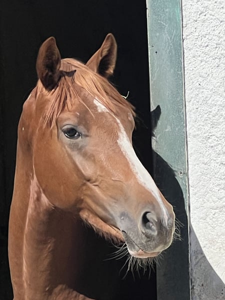 ✨ Zweijähriger Hengst von Zoom – schicker, bewegungsstarker Freizeitpartner mit tollem Charakter ✨ Zum Verkauf steht ein zweijähriger Hengst von Zoom aus sehr guter Abstammung, der durch sein modernes Exterieur, seine ausdrucksstarken Bewegungen und seinen freundlichen Charakter überzeugt. Er zeigt bereits jetzt sehr gute Bewegungen in allen drei Grundgangarten und bringt damit beste Voraussetzungen für eine solide weitere Ausbildung mit. Eine aktuelle Röntgenuntersuchung hat ergeben, dass er einige Gelenkchips sowie eng stehende Wirbel im Rücken hat. Er war lange Zeit sehr überbaut, weshalb wir davon ausgehen, dass sich die Rückenthema mit zunehmender Muskulatur und Entwicklung wieder verbessern wird. Aufgrund dieser Befunde kommt er nicht für den gehobenen Turniersport infrage, ist aber ideal geeignet für jemanden, der sich ein braves, schickes und lernfreudiges Pferd als zukünftigen Freizeit- oder Allroundpartner wünscht. Kurzinfos: • Abstammung: Zoom x Londonderry • Alter: 2 Jahre • Geschlecht: Hengst • Stockmaß: ca. 1,63 m (im Wachstum) • Bewegungen: sehr gut in allen drei Grundgangarten • Charakter: brav, menschenbezogen, unkompliziert • Einsatzbereich: Freizeit, Bodenarbeit, leichte sportliche Nutzung Ein toller Youngster für jemanden, der Freude daran hat, ein sympathisches und typvolles Pferd in Ruhe weiterzuentwickeln. Standort: Mülheim an der Ruhr