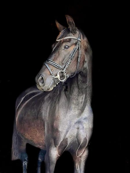 TI Feel Good 4 year old mare by Fürsten Look x Rubinero. Is still raw and stands in the open stable, about 1.58 m, very people-oriented and cuddly. Has a blemish, the back is slightly lowered / soft in the back. Is strong in motion and light-footed.