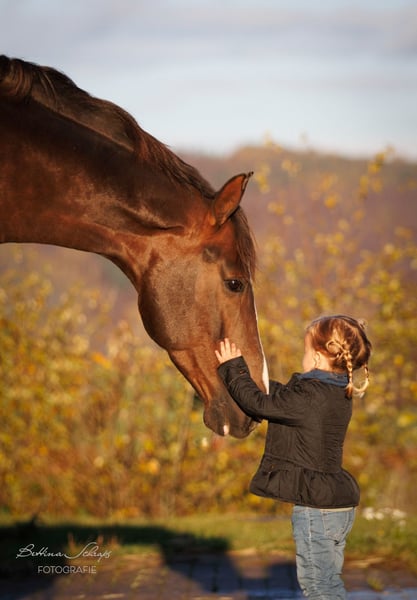 Brenton non lascia nulla a desiderare in termini di conformazione e fondazione. La linea superiore armoniosa e la conformazione del corpo idealmente costruita promettono le migliori qualità di guida. Sotto la sella, l'energico sotto la sella, l'energica gamba posteriore e la meccanica naturalmente ben bilanciata rivelano un potenziale di movimento di prima classe. In combinazione con la sua attitudine al lavoro e alla cavalcabilità, ha vinto meritatamente il suo test di performance da stallone e ha già vinto test per giovani cavalli da equitazione e ha ottenuto un grande successo nei test di dressage per giovani cavalli di livello principiante. Il suo padre, Bonds, geneticamente sostenuto da Benicio e Sir Donnerhall I, ha ottenuto il massimo dei voti. Il padre di Bonds, Bonds, geneticamente sostenuto da Benicio e Sir Donnerhall I, ha brillato durante l'addestramento con il massimo dei voti, la qualificazione al Bundeschampionat e il piazzamento a livello avanzato (S) già a sette anni. La sua fattrice, la cavalla St. Daiquiri, è una comprovata combinazione dei successi hannoveriani De Niro e Espri. e Espri. Tassa di monta: Tassa di servizio: 350 € più il 7% di IVA. Tariffa di gravidanza: 650 € più il 7% di IVA. Potete trovare altre immagini e video sulla nostra homepage all'indirizzo https://www.sportpferde-braehler.de/brenton/