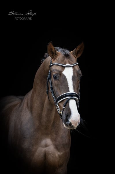 Brenton leaves nothing to be desired in terms of conformation and foundation. The harmonious topline and the ideally constructed conformation of the body promise the best riding qualities. Under the saddle, the energetic under saddle, the energetic hind leg and the naturally well-balanced mechanics reveal first-class movement potential. In combination with his attitude and rideability, he deservedly won his stallion performance test and has already won tests for young riding horses and was highly successful in novice level dressage tests for young horses. His sire, Bonds, who is genetically backed by Benicio and Sir Donnerhall I, has shone Bonds' sire Bonds, who was genetically secured through Benicio and Sir Donnerhall I, shone during his training with top marks, qualification for the Bundeschampionat and was already placed at advanced (S) level as a seven-year-old. His dam, the St. Pr. mare Daiquiri, combines the Hanoverian guarantors of success De Niro and Espri in a proven manner. and Espri. Stud fee: Service fee: 350 € plus 7 % VAT. Pregnancy rate: 650 € plus 7 % VAT You can find more pictures and videos on our homepage at https://www.sportpferde-braehler.de/brenton/