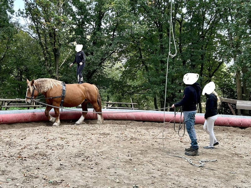 Jument, PP Trait Bretonne,env 1m62, née 2017 Adorable, bosseuse, peur de rien Fait actuellement de la voltige, spectacle, cours montés, balade. Vit au pré avec autres chevaux et poneys Papier, parage, vaccins ok