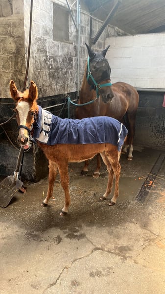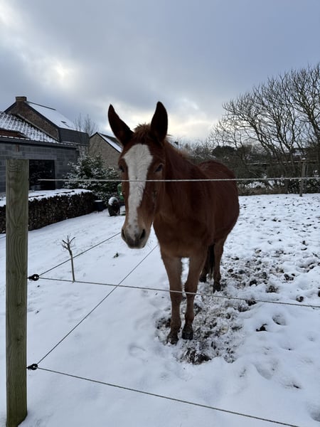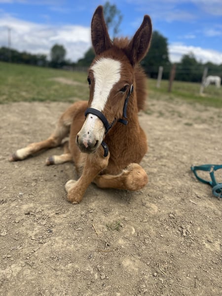 Bonjour, Je vends, à contre cœur, mon mulet prenant 4 ans en février 2026. En août 2021 j'ai acheté ma jument PRE. Celle-ci était en Belgique depuis deux mois seulement. J'ai appris, en février, quelques jours avant la naissance, qu'elle était pleine. Lorsque Pablo est né nous avons constaté qu'il s'agissait d'un mulet. Nous avons tout de suite accroché avec lui, il a un caractère particulier et bien à lui, très attachant ! Nous avons alors voulu le garder. Cependant, la vie nous oblige maintenant à voir les choses autrement, nous avons eu deux enfants très rapprochés et n'avons malheureusement plus assez de temps pour lui... Il vit au pré toute l'année avec sa maman (ils ont été séparés 6 mois pour le sevrage lorsqu'il avait 6 mois). Pablo est extrement gentil mais pas debourré. Il est très proche de l'homme et adore être brossé. L'important pour nous est qu'il parte dans une bonne famille.