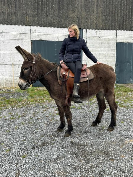 Mare donkey, ridden, 12 years old, approximately 146 cm. Super sweet mare suitable for leisure, has also been driven. E-pass and microchip, €2400. For information, call 0171-4001968 from 9 AM to 9 PM, phone only.