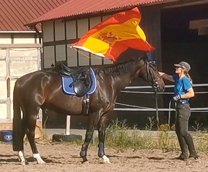 A very kind and easy-going gelding by the Oldenburg elite dressage stallion St. Schufro, out of a mare by Feiner Stern (Hannover) from the Furioso II line, making him double talented in both dressage and jumping. Unfortunately, he has never been fully promoted, so he has some catching up to do to realize his full potential. He is currently in training and being versatilely educated. This is a horse that, with further nurturing by a sensitive rider, will bring a lot of joy and is finally looking for his person.