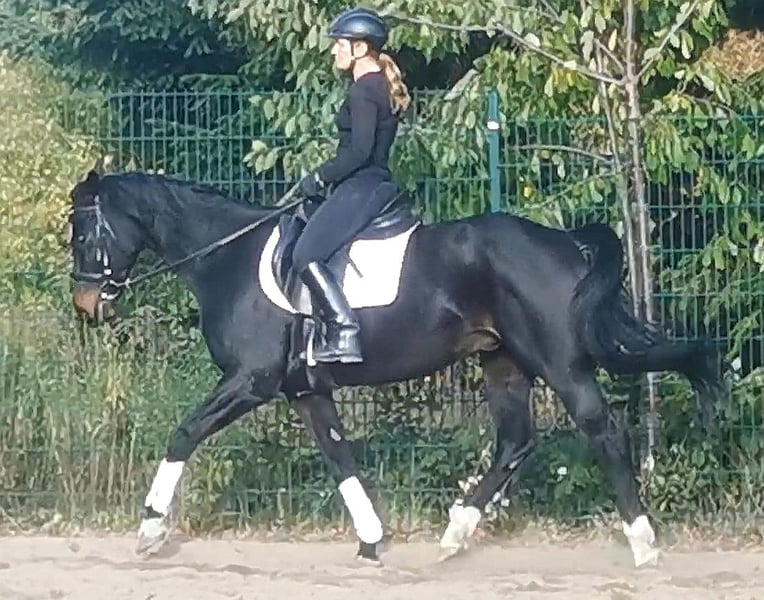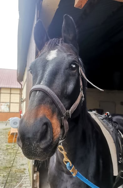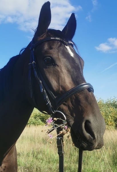 Sehr lieber und umgänglicher Wallach vom Oldenburger Elitedressurhengst St. Schufro und einer Mutter von Feiner Stern (Hann.) aus der Furioso II-Linie, also doppelveranlagt in Dressur und Springen. Wurde leider nie wirklich gefördert und hat daher etwas Nachholbedarf, um sein ganzes Potential zum Vorschein zu bringen. Befindet sich derzeit bei mir in Beritt und wird vielseitig weiter ausgebildet. Ein Pferd, das bei weiterer Förderung durch eine feinfühlige Reiterin sehr viel Spaß machen wird und endlich seinen Menschen sucht. Im linken Auge hat der Wallach einen kleinen weißen Fleck, bei dem es sich laut TA der Vorbesitzerin um eine verletzungsbedingte Keratitis aus Jugendzeiten handelt, die vermutlich das Sehvermögen etwas einschränkt, aber sich im Alltag als absolut irrelevant herausgestellt hat. Ich bin nicht die Verkäuferin, sondern helfe lediglich dem Eigentümer, einen lieben neuen Besitzer zu finden. Das Pferd kann aber bei mir besichtigt und probegeritten werden.