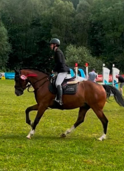 Dancer is a versatile, well-trained gelding ready to start the next chapter with his new rider next year. Whether it’s dressage, show jumping, or eventing, Dancer has achieved wins in all three disciplines. He is very familiar with competitions, always remains calm, and is suitable for children. He tends to be more of a laid-back type and looks after his rider. However, a more ambitious rider can also easily motivate him to perform at a higher level. In handling and hacking, he is always well-behaved and uncomplicated. He has an FEI passport and is registered as a pony.