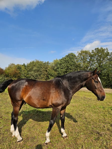 Ik ben op zoek naar een nieuw en liefdevol thuis voor Bobby (bijnaam). Bobby is zeer braaf en makkelijk te rijden, en in de omgang erg vriendelijk, wat hem tot een geweldige partner maakt, ook voor overstappers of recreatieruiters. Hij is altijd gemotiveerd, of het nu tijdens training is of op een concours. Bobby is absoluut betrouwbaar in het terrein en geniet van lange buitenritten, waarbij hij altijd rustig en alert blijft. Hij is zeer goed te hanteren met andere paarden. Momenteel staat hij op een hengstenweide, maar hij kan ook goed uit de voeten in gemengde groepen. Vanwege tijdgebrek verkoop ik mijn langjarige vriend met pijn in het hart en wil ik hem alleen in echt liefdevolle handen geven.