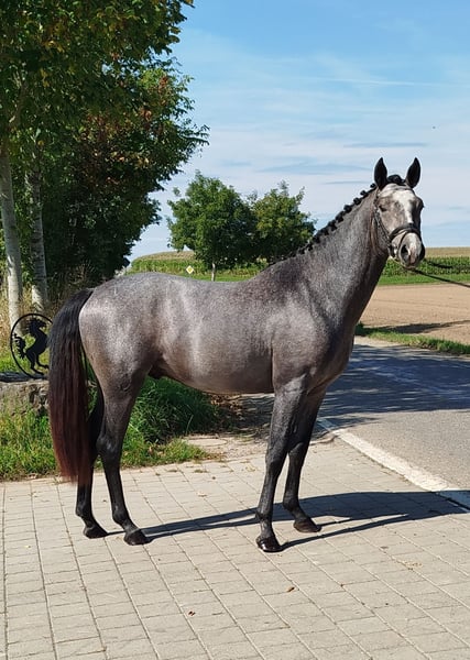 Verkaufe deutsches Reitpferd,geb. 2023, Apfelschimmel Zum Verkauf steht ein vielversprechendes Nachwuchs Pferd von Singulord Joter! Er besticht nicht nur mit einer wunderschönen Ausstrahlung auch zeigt er viel Potenzial am Sprung. Seine Endgröße wird so ca. 165 cm . Bei weiteren Fragen bitte gerne melden oder mit uns persönlich ein Termin aus machen! LG Joos