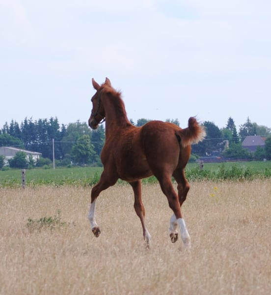 Jako zwiastun wiosny kolorowy lis otworzył tegoroczny sezon źrebiąt. "Mon Ami" Le Chevalier i Marjellchen v. Marduc zaskoczyły wszystkich. Co za mocny fundament, co za doskonałe mocowanie szyi, a następnie ogromny rozmiar. Z energią życiową w kilka minut po urodzeniu na nogach i na wymieniu, więc pierwsze wrażenia. Po dwóch dniach najmłodszy syn 20-letniej córki Marduc poszedł o jeden lepiej na swoim pierwszym spacerze, w którym pokazał ruchy najwyższej jakości. Galop pod górę, który zasługuje na to oznaczenie i akcentowane kolana momenty kłusowania, które sprawiają, że wiele można się spodziewać. Oczywiście koneserzy od razu rejestrują pożądany chów wsobny na naszym byłym głównym reproduktorze Marduc, co przyniosło tu widoczny sukces. Marjellchen, która otrzymała nagrodę stowarzyszenia na ZfdP jako federalna klacz wystawowa w Altefeld, będzie prawdopodobnie jedną z ostatnich aktywnych córek hodowlanych Marduca. Jej syn "Mon Ami" jest obecnie zarejestrowany jako niemiecki szlachetny koń krwi w ZSAA. Z niecierpliwością czekamy na ocenę. Niezwykłe jest jego wielkie podobieństwo do ojcowskiego przyrodniego brata Lamiro, którego niestety musimy wychowywać bez matki.