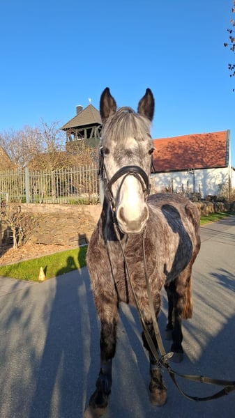 Prinz ist ein 7-jähriger Schimmelwallach, der mit seinem freundlichen und neugierigen Wesen sofort überzeugt. Er ist sensibel, dabei sehr menschenbezogen und möchte seinem Reiter immer gefallen. Prinz ist bis zu Klasse E ausgebildet und beherrscht bereits die Grundlagen der A-Dressur. Auch im Springen zeigt er sich sicher und motiviert. Im Gelände ist Prinz ein zuverlässiger Partner und erkundet seine Umgebung aufmerksam. Durch seine sensible Art braucht er einen Reiter, der ihm Sicherheit gibt. Mit der richtigen Führung ist er auch für Anfänger geeignet und ein tolles Freizeitpferd. Prinz eignet sich besonders für Reiter, die einen liebevollen und lernwilligen Partner sucht, mit dem sie weiter wachsen können. Probereiten ist möglich. Standort ist 01612