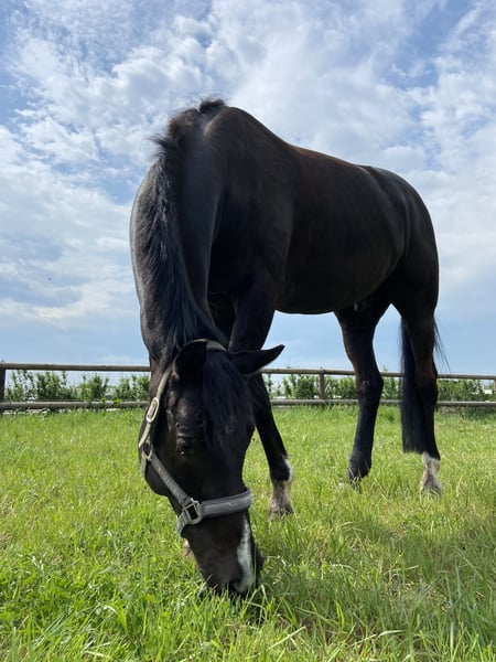Aus gesundheitlichen sowie zeitlichen Gründen muss ich mich leider von diesem wunderschönen Wallach namens Linstagram, Spitzname Loui trennen. Loui ist im Jahr 2018 geboren und hat ein Stockmaß von 1,74m. 2 1/2 jährig ist er in meinen Besitz übergegangen, mit 3 1/2 Jahren wurde er von mir angeritten und bekam dann nochmal ein Jahr auf der Wiese zum wachsen. Vier und fünfjährig war er viel im Gelände. Außerdem stand er zu diesem Zeitpunkt mit einer anderen Stute in einem Selbstversorger Offenstall. Letztes Jahr sind wir in einen anderen Stall umgezogen (Standort des Pferdes in Eibergen, Niederlande kurz hinter Vreden), Boxenhaltung mit ganzjährigem Weidegang, dort bin ich angefangen ihn Dressurmäßig zu arbeiten. Aktuell befindet er sich auf Dressurpferde L Niveau, Traversalen sowie Wechsel begonnen. Auf Lehrgängen habe ich ihn mitgenommen, bei denen er sich vorbildlich benommen hat, auf Turnieren wurde er noch nicht vorgestellt da meinerseits keine Turnierambitionen bestehen. Aktuell liegt eine AKU vor, diese ist ohne Befund. Loui ist immer kopfklar, steigt und buckelt nicht. Er lässt sich gut verladen und ist schmiedefromm. Außerdem hat er keine Verhaltensstörungen wie koppen, Weben, usw. Ich möchte Loui an jemanden verkaufen mit Familienanschluss, er soll nicht als reines Sportgerät dienen. Ich wünsche mir jemanden der ihm ein 5* zu Hause bieten kann und wo es ihm an Kuscheleinheiten sowie anderen pferdigen Freunden an nichts fehlt und wo er weiter gefördert wird. Reitvideos können zugeschickt werden. Außerdem kann das Equipment, Equiline Sattel, Trense, Schabracken, Decken usw. übernommen werden. Platz vor Preis. Bei weiteren Fragen stehe ich Ihnen gerne zur Verfügung.