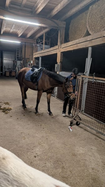 Wij bieden onze bijna 8-jarige ruin (geboren in maart 2018) te koop aan, met een stokmaat van 1,55 m, vanwege gebrek aan tijd. Hij is een eerlijk en zeer intelligent paard van nature. Zijn karakter is zeer rustig en totaal onbevreesd. Hij is inmiddels onder het zadel veilig, maar nog steeds te ontwikkelen. Af en toe vraagt hij zich af of hij het echt moet doen. Van de grond doet hij het geweldig. Over de sprong zonder ruiter toont hij zich zeer enthousiast. In het terrein heeft hij, afgezien van wandelen, nog geen ervaring opgedaan. In december heeft hij zijn laatste gebitsbehandeling gehad en de hoefsmid is net geweest. Hij heeft wat tijd nodig om zich aan zijn mens te wennen, maar daarna is hij een echt hartpaard. Helaas heeft hij meer tijd en beweging nodig dan ik kan bieden. Hij kent de stal, weide en open stal. In de kudde toont hij zich in het midden van de rangorde. Hij is zeer geïnteresseerd en moeilijk uit zijn rust te brengen. Volgens mij past een ambitieuze recreatieve ruiter die graag een cursus of een kleine wedstrijd wil rijden, bij hem. Met iets meer training is hij daar zeker voor te trainen. Alle accessoires kunnen overgenomen worden, inclusief een aangepaste zadel. Dit is bij de prijs inbegrepen. Ik doe hem niet onder de waarde weg en het is geen noodverkoop. Het paspoort is aanwezig. Voor een proefrit vraag ik €20, die bij aankoop wordt verrekend. Het is mogelijk dat hij, indien gewenst, bij ons op de stal kan blijven. De prijs is bespreekbaar.