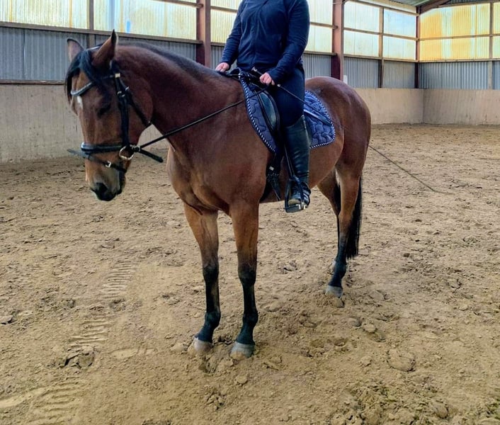 Ehrlicher & unerschrockener Freizeitpartner (8J, 1,55m) – inkl. Zubehör Schweren Herzens verkaufe ich meinen fast 8-jährigen Wallach (*03/2018), da ich ihm zeitlich leider nicht mehr gerecht werden kann. Er ist ein von Grund auf ehrliches, intelligentes und nervenstarkes Pferd. Eckdaten & Charakter: Stockmaß: 1,55 m Charakter: Absolut ruhig, unerschrocken, kein renner ! Er kennt Spiel Kinder, Fahrräder, Trettrecker, Bobbycars, Radlader und Handwerksgeräte direkt vor der Boxentür. Verhalten: Er ist im Umgang ein wahrer Schatz, braucht aber einen Moment Zeit, um Vertrauen zu fassen. Hat man sein Herz gewonnen, ist er ein echtes „Herzenspferd“. Herdenrang: Mittlerer Rang (kennt Box, Weide und Offenstall). Ausbildungsstand: Unterm Reiter: Er läuft in alle 3 Gangarten sicher unterm Reiter. Hat Potenzial in der Dressur noch weit zu kommen. Er ist schon jetzt ein sicherer Freizeitpartner und absolut verlässlich. Bodenarbeit & Springen: Am Boden arbeitet er hervorragend mit. Er ist top Halfterführig und kennt einige Kommandos. An der Longe reagiert er auf Stimmbefehle. Beim Freispringen zeigt er sich sehr talentiert und hat sichtlich Freude am Sprung. Gelände: Bisher ist er routiniert im Spazierengehen; unter dem Reiter ist das Gelände noch Neuland für ihn. Gesundheit & Pflege: Er ist topgepflegt und sofort einsatzbereit: Zähne: Letzte Behandlung im Dezember. Hufschmied: Frisch ausgeschnitten/beschlagen. Pass: Vorhanden. Zusatzoptionen & Zubehör: Das komplette Zubehör, inklusive seines frisch angepassten Sattels, ist im Kaufpreis enthalten, sowie alles weitere. Besonders attraktiv: Auf Wunsch besteht die Möglichkeit, dass er weiterhin in seinem gewohnten Stall untergebracht bleibt. Ideal für: Ich sehe ihn bei einem ambitionierten Freizeitreiter, der Lust auf Lehrgänge, Abzeichen oder kleinere Turniere hat. Mit gezieltem Training ist er ein toller Partner für alle Sparten der Reiterei. Er macht einfach Spaß und ist eine sicheres Verlasspferd. Wichtige Hinweise: Dies ist kein Notverkauf, er wird nicht unter Wert abgegeben. Um Reittourismus zu vermeiden, berechne ich für das Probereiten 20 €, die bei einem Kauf selbstverständlich angerechnet werden. Interesse geweckt? Dann freue ich mich über eine Nachricht, um ein Kennenlernen zu vereinbaren!
