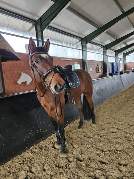 Special ist ein ruhiger, ausgeglichener Wallach mit vielseitiger Ausbildung und einem sehr angenehmen Charakter. Aufgrund seiner Gelassenheit wurde er Ende 2023 als Voltigierpferd ausgebildet: Bereits fünfjährig lief er entspannt und gleichmäßig an der Longe und tolerierte alles auf seinem Rücken absolut souverän. Zuvor wurde Special als Springpferd ausgebildet. In den letzten zwei Jahren stand bei uns jedoch ausschließlich die dressurmäßige Arbeit neben dem Voltigiersport im Vordergrund, in der er sich kontinuierlich weiterentwickelt hat. Unter dem Reiter zeigt er deutlich mehr Motivation und deutliches „Go“ als an der Longe. Leider bereitet ihm das Voltigieren – sowohl im höheren WBO- als auch im LPO-Bereich – wenig Freude. Insbesondere die Galopparbeit fällt ihm im Voltigieren schwer, und er kommuniziert dabei klar, dass ihm diese Arbeit keine Freude bereitet. An der Longe fehlt ihm hierfür die notwendige Vorwärtsenergie, während sich dieses Thema unter dem Reiter nicht zeigt. Aus diesem Grund suchen wir für Special ein neues, passendes Zuhause. Wir können ihn uns sehr gut als Therapiepferd, Familienpferd oder zuverlässigen Freizeit- und Dressurpartner vorstellen. Special wird nicht für den Voltigiersport verkauft! Weitere Informationen: - Schmiede- und verladefromm - Sehr brav und zuverlässig im Umgang - Herbst 2023: Entfernung von Chips aus den Vorderbeinen (entdeckt bei großer AKU, Röntgenbilder aus 2023 liegen vor) - Ende 2024: Kolik-Operation, seither tägliche Mash-Fütterung - Nach dem Wiederantrainieren läuft Special wieder normal im Sport Er ist ein ehrliches, feinfühliges Pferd, das deutlich zeigt, was ihm liegt und was nicht. Wir wünschen uns für ihn ein liebevolles Zuhause, in dem seine Stärken gefördert und seine Bedürfnisse respektiert werden. Videos gerne auf Anfrage.