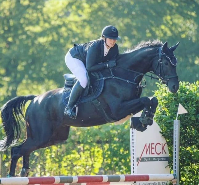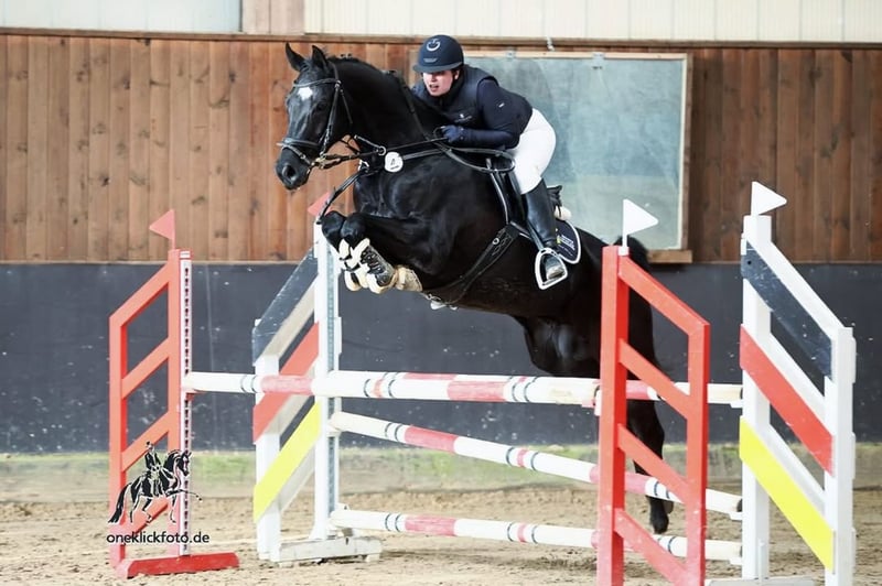 Bonfire is a stunning gelding, impressing with exceptional talent and an impressive cautiousness over jumps. Additionally, he stands out with three outstanding basic gaits, making him a very versatile partner suitable for both jumping and dressage, and capable of being used as an all-rounder. In his first season in 2023, he successfully placed in Youngster Jumping Class A and shows great potential for further achievements. His calm, friendly, and balanced nature makes him an excellent companion both at home and in competition. Bonfire remains consistently calm and unfazed—whether loading, during lunging, or in everyday handling. He is very well-behaved in the field and always reliable, whether alone or in a group. He is also shoe- and loading-safe and has no special requirements. Bonfire is a trustworthy partner, well-suited for demanding riders thanks to his pleasant demeanor, expressive movement, and great potential. A true all-rounder who can impress equally in jumping and dressage! ------- All our listed sale horses are regularly vaccinated and dewormed from birth. Annual routine dental care is also part of our standard procedure. We X-ray all our horses before starting under saddle. Unless otherwise noted, the X-rays show no findings. To ensure the protection of the horses, we charge €30 for trial riding, which will be refunded upon purchase. For further details and questions about the sale horses, please contact us by phone. Messages are only answered to a limited extent.