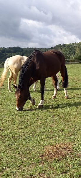 Pauline – Mare with Top Show Jumping Pedigree | Broodmare / Companion / Coaching Horse Pauline is a 10-year-old mare registered with the Anglo European Studbook, boasting excellent show jumping lineage (Pablo AS x Lord Pezi). She impresses primarily with her exceptional temperament and her friendly, human-oriented nature. She has already given birth to two healthy foals and has proven to be a very reliable and caring mother. Therefore, she is ideally suited for further breeding. In terms of character, Pauline is an absolute sweetheart—friendly, balanced, and trustworthy. Her presence and calm demeanor make her also highly suitable for horse-assisted coaching, for example in leadership development, or as a loving companion horse. Due to an accident in her youth, Pauline developed pronounced osteoarthritis and is no longer rideable. However, this does not affect her breeding ability. She remains sound and free of lameness in daily life. Originally, we intended to use her as a school horse in our club because of her good character, but she is no longer able to handle this level of activity. Brief overview: • Mare, 10 years old • Registered with the Anglo European Studbook • Excellent show jumping pedigree • Two foals, proven and excellent mother • Character rated 10/10 • Not rideable (arthritis from accident) • Lame-free in daily life • Suitable as a broodmare, companion, or coaching horse Pauline will only be placed in suitable, appreciative hands where her character and qualities are valued. If genuinely interested, we look forward to your message and are happy to share more about Pauline. Phone: 0170-262 49 31 Place before price!