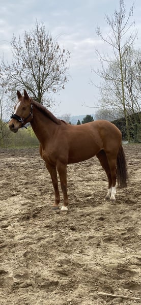 Casey is an 11-year-old chestnut mare standing at 16.1 hands. Her pedigree is unfortunately unknown. In recent years, she has been ridden primarily for leisure, demonstrating that she requires consistent work with a rider who can handle some testing behavior. Out in the field, she has some go but remains manageable. Since a few weeks, she has been under professional training, and groundwork and jumping exercises have been introduced. Casey shows a lot of enthusiasm and talent for these activities. No current veterinary certificate is available, and she is not yet registered as a competition horse. Location: 32425 Minden Videos available via WhatsApp at 0176-70349915