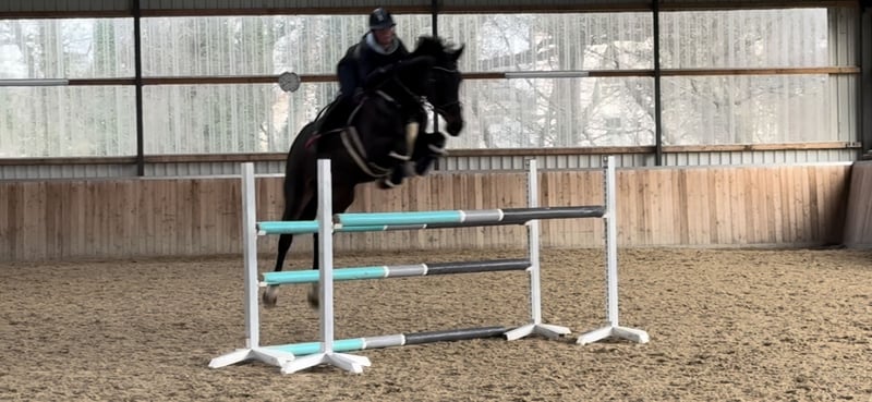 For sale is a beautiful German riding mare, born in 2013 (16.1 hh). She is a very reliable school horse, forgiving of rider errors, and brings joy every day. This mare is a safe partner in show jumping, with experience up to M (medium) class, and is incredibly sweet, fearless, and affectionate in her handling. She is the perfect horse for children or riders transitioning to a new discipline. She is familiar with hack rides, pasture turnout, dogs, farrier visits... everything is no problem. We are only offering her to good, family-oriented homes (no dealers). For further information, please contact us by phone at 0171 2722756.